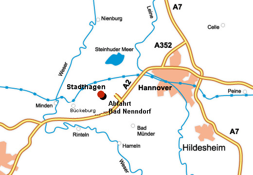 Aus Richtung Hannover kommend nutzen Sie am besten die Ausfahrt "Bad Nenndorf" und folgen der B 65 in Richtung Stadthagen.